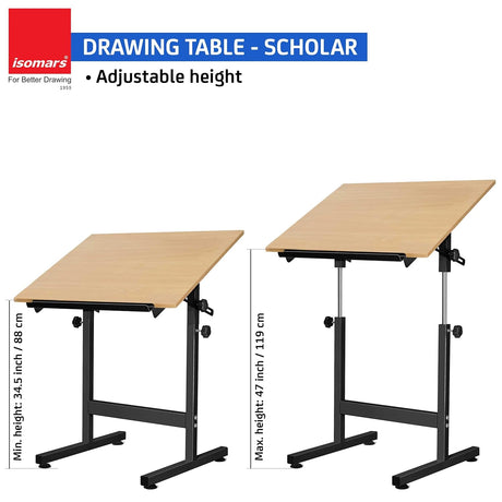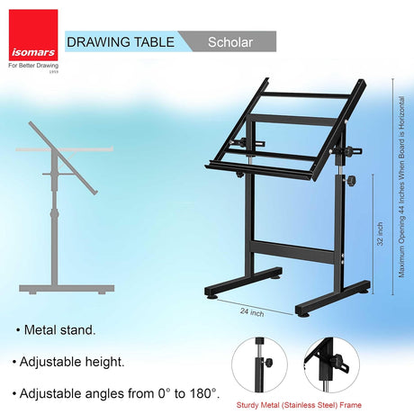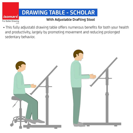 Isomars Drawing Board Table - Scholar with White Laminated Board Size - 25.5"x35" and Drafter
