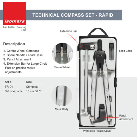 Isomars Teacher's Blackboard/Whiteboard Compass | Divider With Marker/Chalk Holder