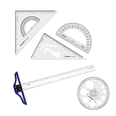 Technical Drawing Combo- 10x12 Inches Set Square, Pro Circle, 24 Inches T-Square, & Protractor
