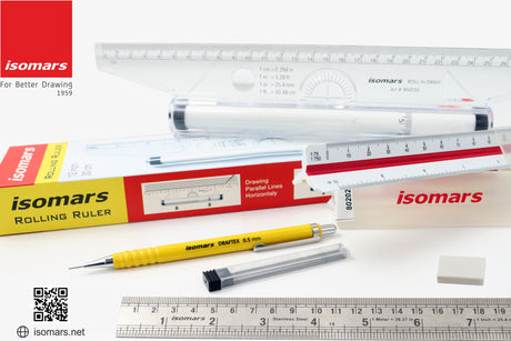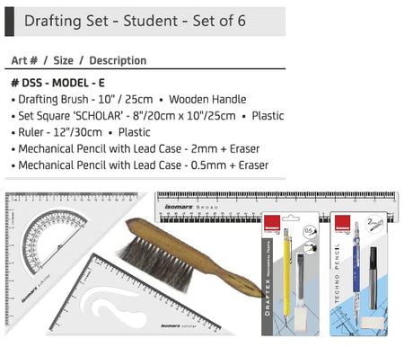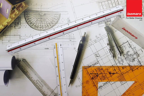 Isomars Technical Set Squares, Protractor,12 Inch Scale - Sides Beveled