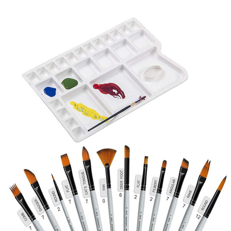 Colour Mixing Palette & Flat and Round Brushes (Set of 7)
