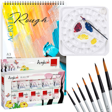 Drawing Kit (Acrylic Pad, Square Colour Palette, Acrylic Ink Collection and Brush Set)
