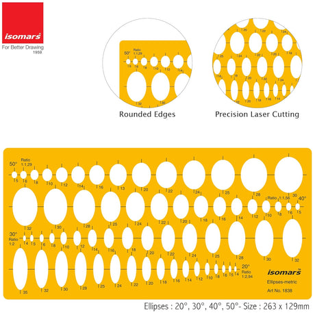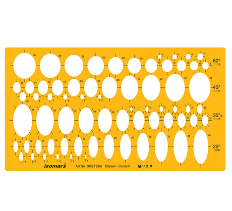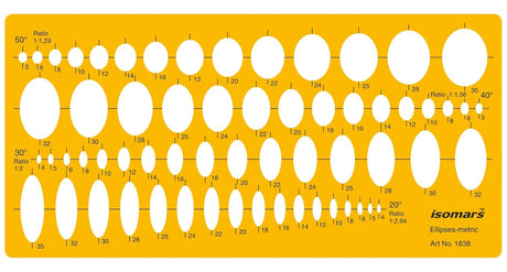 Isomars Ellipses - 20°,30°,40°,50° Shapes Figure Drawing Drafting Template