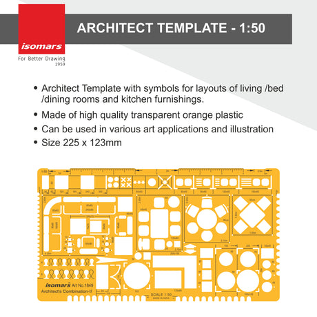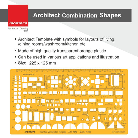 Isomars 1:100 Scale Architectural Drawing Template Stencil - Architect Combination Templates