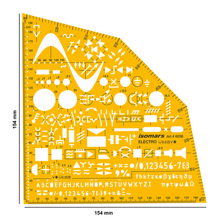 Isomars Electrical Drawing Template, Electro Stencil, Orange Plastic, 154x154mm