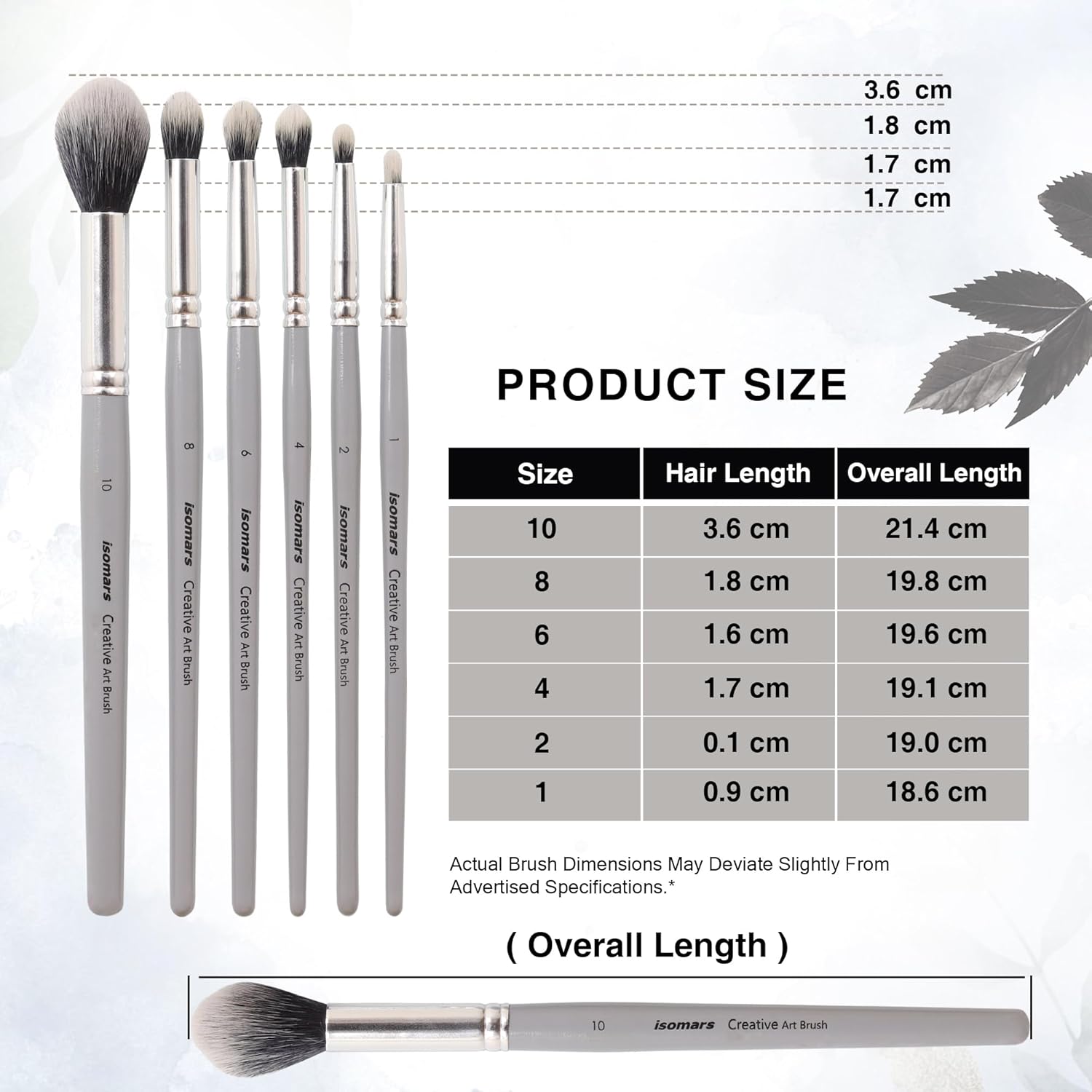 Set of 6 Round Brushes: Includes sizes 1, 2, 4, 6, 8, and 10